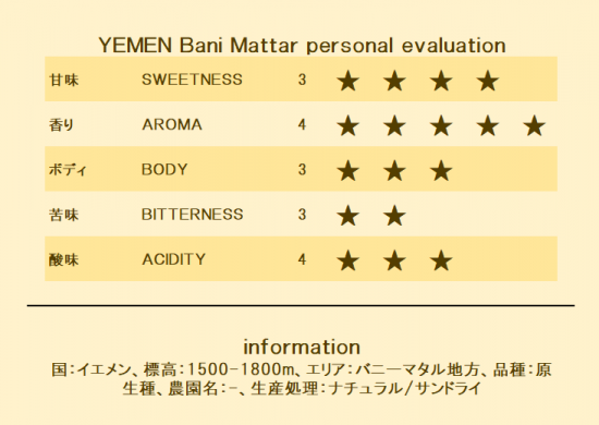 イエメン/バニーマタル(シティロースト・中深煎り)500g