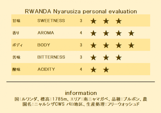 ブラウンシュガーのようなコクも感じます。ルワンダならではの野性味あるコーヒーです。